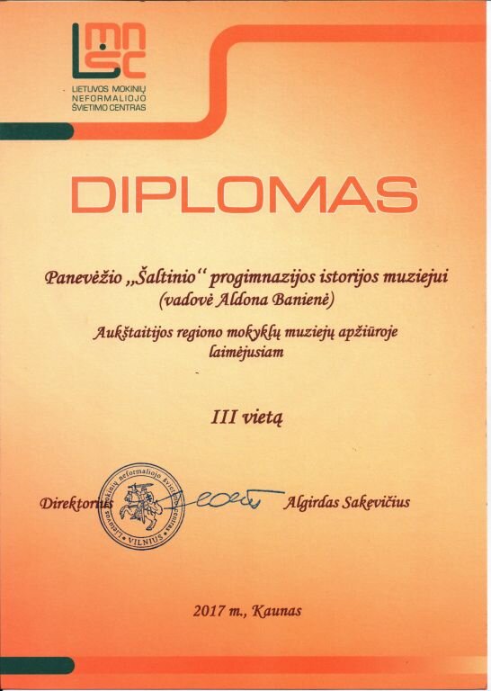 Aukštaitijos regiono mokyklų muziejų apžiūroje – III vieta