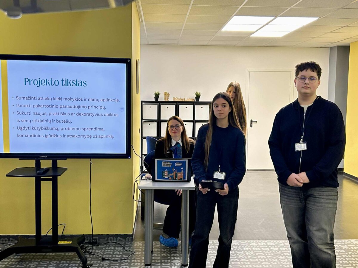 Mokiniai pasiūlė tvaraus vartojimo sprendimus, panaudodami stiklainių ir stiklinių butelių antrinį pritaikymą netikėtais būdais: kuriant dekoracijas, daiktų laikymo sistemas ir aplinką puošiančius objektus. Šie sprendimai pabrėžė, kad stiklo gaminiai gali būti ne tik perdirbami, bet ir kūrybiškai prikelti naujam gyvenimui.