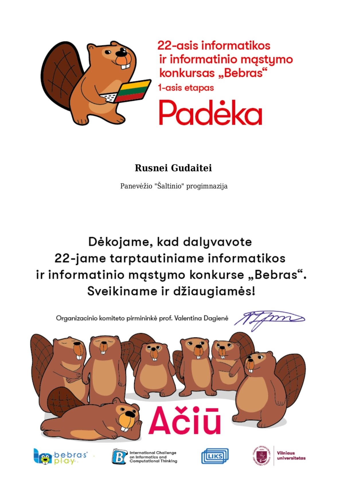 Rusnė Gudaitė, 8b kl., 1 vieta