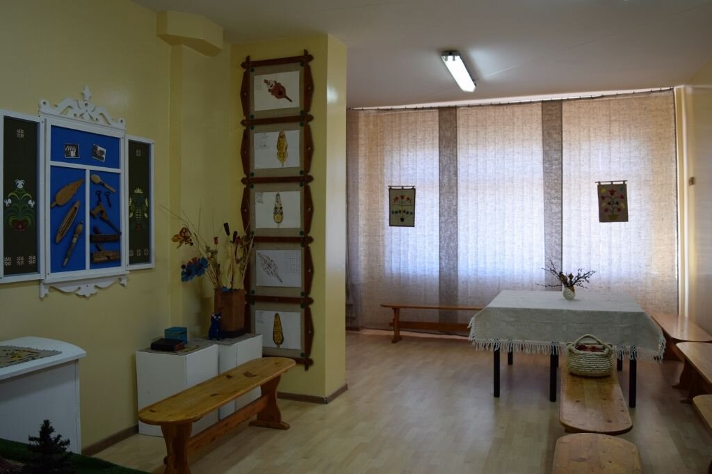 Klasė įrengta buvusiame mokytojų kambaryje, kuris, įvedus elektroninį dienyną, tapo rečiau naudojamas. Kabinetas turi dvi siena atskirtas patalpas. Vienoje iš jų vyksta mokinių užsiėmimai, integruotos pamokos, pristatomi projektiniai darbai, kitoje – atkurtas senovinės seklyčios vaizdas, sudėti XIX a. pabaigoje ir XX a. pradžioje valstiečių buityje naudoti daiktai.