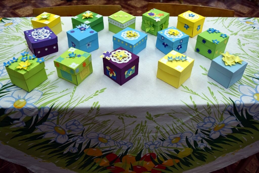 2019 m. balandžio 11 d. Šaltiniečių bendruomenės narės, mamos su vaikais progimnazijos dailės kabinete dalyvavo praktiniame užsiėmime „Dėžučių mieloms dovanėlėms gaminimas“, artėjant šv. Velykoms pasisėmė idėjų, kaip sukurti originalų dovanėlės įpakavimą artimiesiems, draugams. Užsiėmimą organizavo rusų kalbos mokytoja Vida Jarmalavičienė ir technologijų mokytoja Auksuolė Urbonienė.