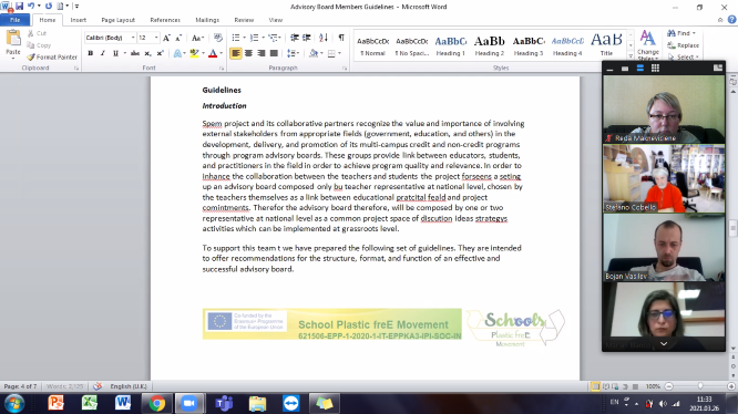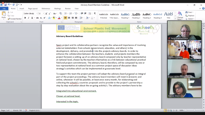 2021 m. kovo mėn. 26 d. įvyko programos „Erasmus+“ KA3 tarptautinio projekto ekologijos tema „Judėjimas: mokykla be plastiko“ („School Plastic Free Movement“, Nr. 621506-EPP-1-2020-1-IT-EPPKA3-IPI-SOC-IN) partnerių susitikimas, kurio metu aptartas Patariamosios tarybos veiklos organizavimas ir numatytos tolesnės projekto veiklos. Jau balandžio mėnesį mokytojus pakviesime į anglų kalbos kursus, kurių metu bus tobulinami kalbėjimo aplinkosaugos temomis įgūdžiai.