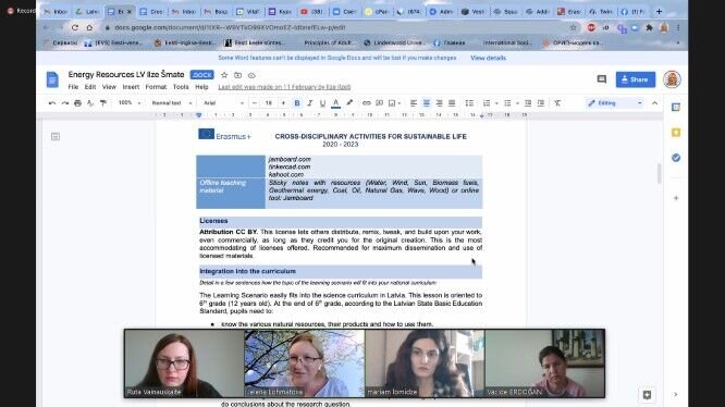 Erasmus+ projekto „Tarpdisciplininės veiklos tvariam gyvenimui“ dalyvių nuotolinis susitikimas