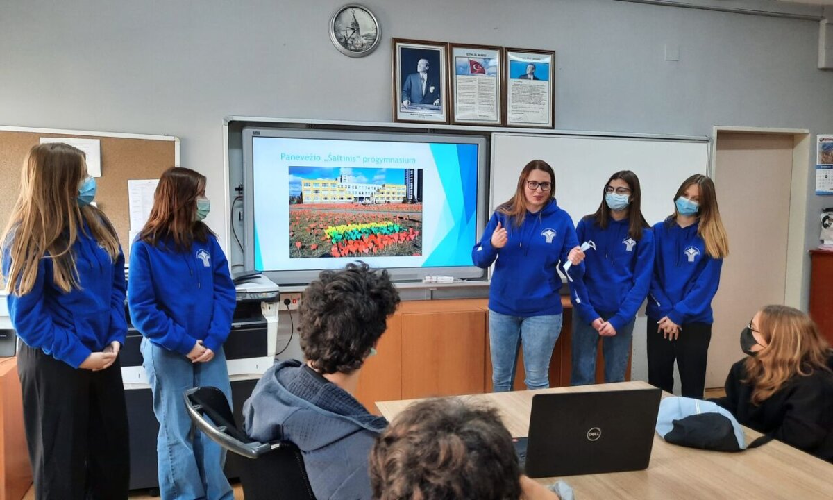 Erasmus+ projekto MA(R)TH progimnazijos ambasadorės: direktoriaus pavaduotoja Rūta Vainauskaitė (projekto koordinatorė), bibliotekininkė Aldona Banienė, Aistė Tamulionytė (8a), Samantha Andrea Blažytė (8b), Gabija Kairytė (8a) ir Dilana Viplentaitė (8a), 2021 metų lapkričio 14–19 dienomis Stambulo mieste Turkijoje susitiko su projekto partneriais ir įgyvendino suplanuotas veiklas.