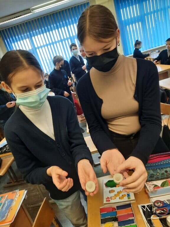 Penktokai gamtos ir žmogaus pamokoje kartu su mokytoja Gitana aiškinosi, kaip iš maisto produktų gauname maisto medžiagų, gamino virškinimo organų modelį. Atlikdami bandymą įsitikino, kad kvėpavimo organai bei širdis dirba suderintai ir suprato, kad organizmas gali apsirūpinti energija tik tuomet, kai visi organai dirba darniai.