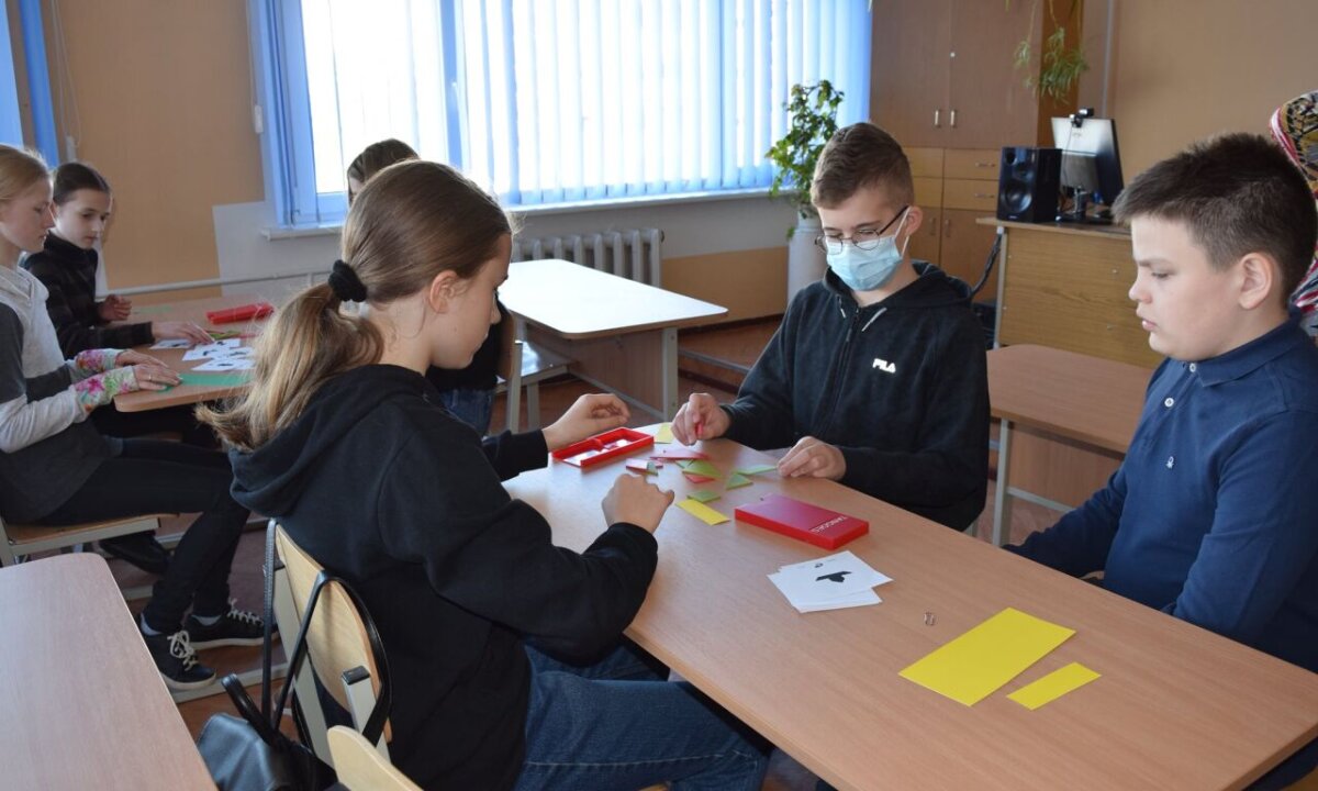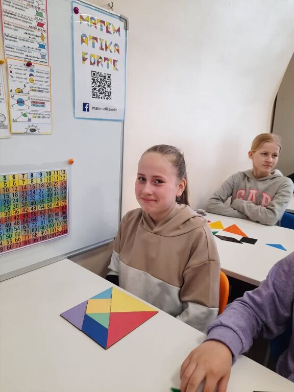 Matematikos kabinete stovyklautojai dirbo grupelėmis, atliko įvairaus sudėtingumo logines užduotis, užduočių sudėtingumo lygį (nuo vieno iki penkių taškų) mokiniai pasirinko patys. Juos konsultavo mokytojos Silvija ir Vilma.