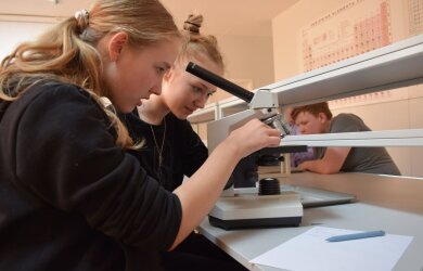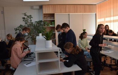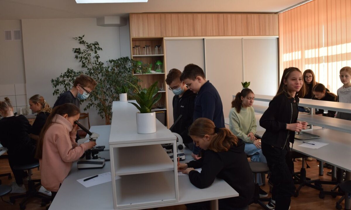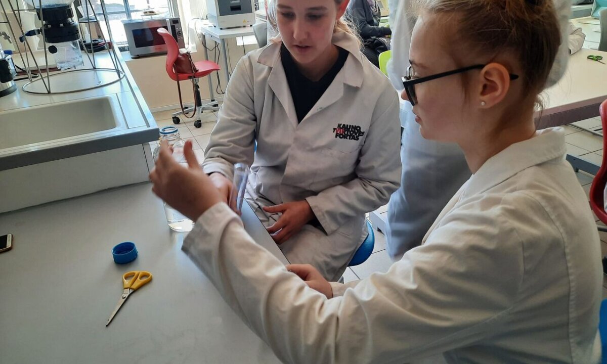 MEK laboratorijoje, konsultuojant mokytojai Ligitai, mokiniai tobulino darbo su mikroskopais gebėjimus. Mokėsi kelti hipotezę ir daryti išvadas. Stebėdami skirtingus objektus, matomą vaizdą susiejo su geometrinėmis figūromis.