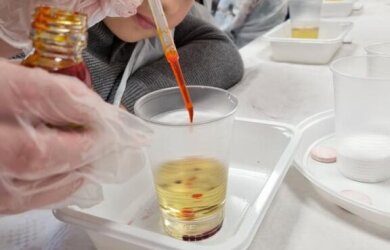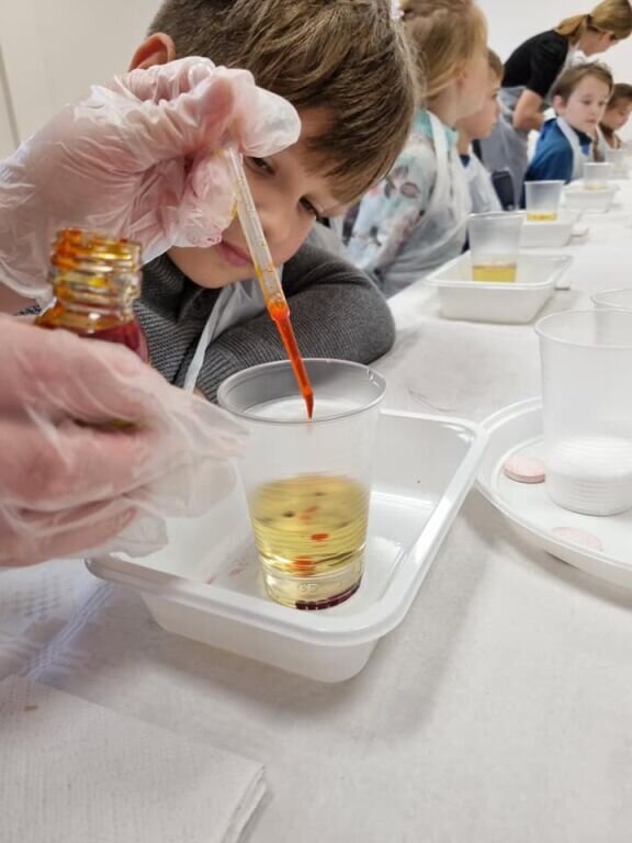 5b klasės mokiniai gamtos ir žmogaus pamokos metu pabuvojo „Pojūčių pasaulyje“. Čia jaunieji tyrinėtojai sužinojo, kas yra receptoriai, nervai, galvos smegenys. O patirtinio mokymo(si) metu aiškinosi, kokie yra penki pagrindiniai žmogaus pojūčiai ir kaip jie, padedant jutimo organams, susiformuoja. Gamtos ir žmogaus mokytoja Gitana Jasaitienė