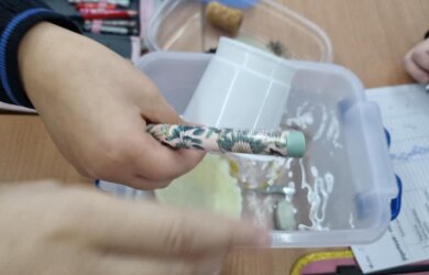 2b klasėje ir vėl įdomi STEAM veikla – mokiniai tyrinėjo įvairias fizines medžiagų savybes: aiškinosi, kokios medžiagos dega, o kokios - ne; svėrė įvairius daiktus; nustatinėjo iš ko jie pagaminti; kėlė hipotezę, kad skęsta visi daiktai, pildė tyrimų lapą; tyrė skęsta jie ar ne; formulavo išvadas lygindami daikto svorį su skendimo faktoriumi. Tačiau hipotezė nepasitvirtino. Mokytoja Geta Pečiulienė.