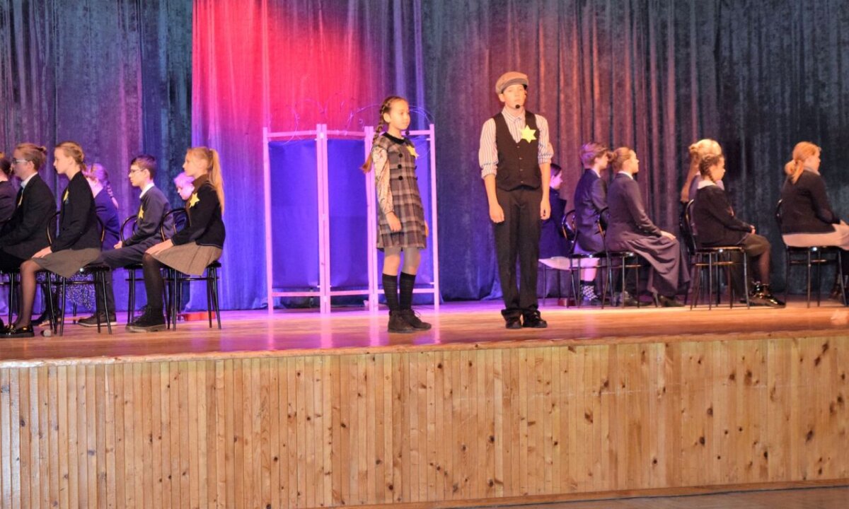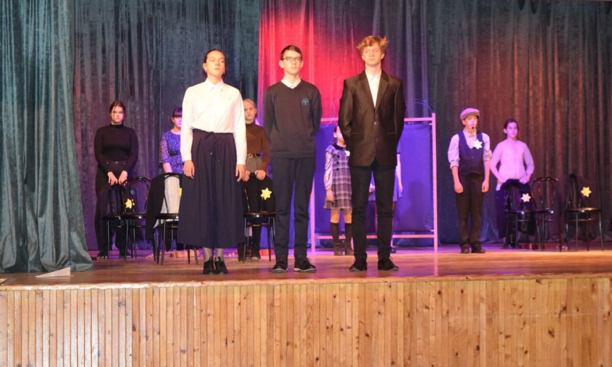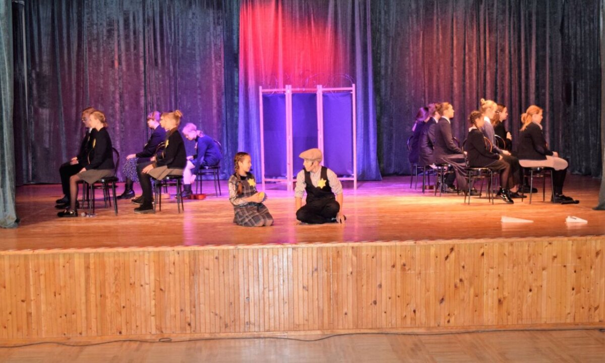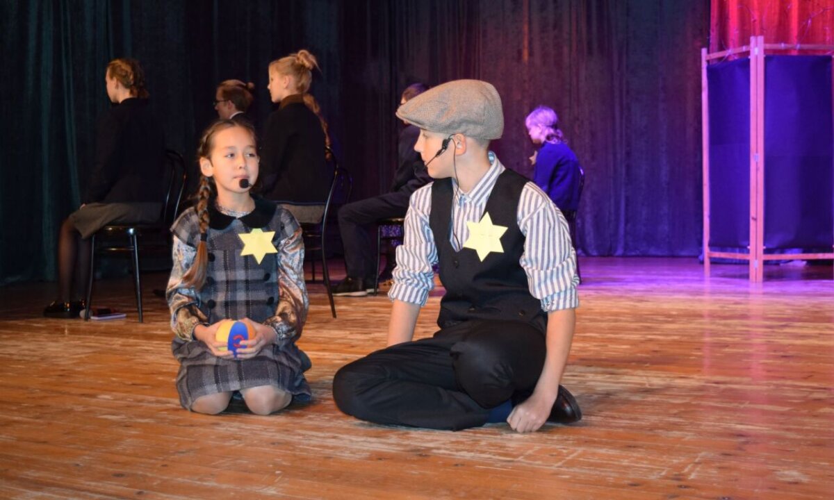 Mokyklos bendruomenei buvo parodytas vaidybinis siužetas „Trumpa geto istorija“. Vaidybiniame siužete buvo istorija apie žydų vaikus, įkalintus gete ir analizuojančius – kodėl tėvelis nebegrįžta, kur jis yra? Vaidybinio siužeto epiloge vyresnieji mokiniai išsakė savo mintis apie istoriją ir praeities žaizdas, žmonių netektis ir dabar vykstantį karą Europoje.