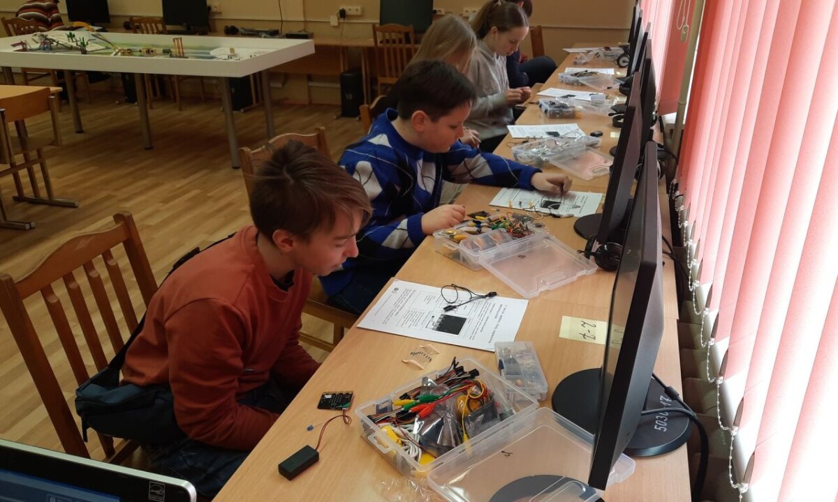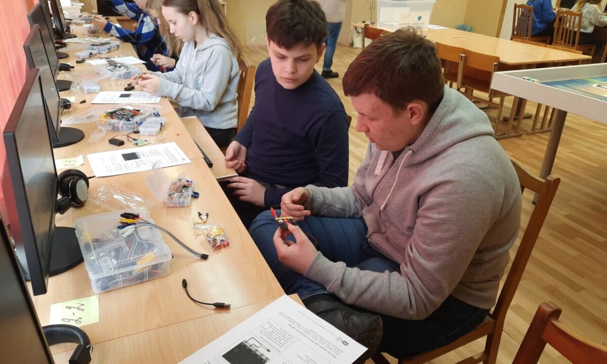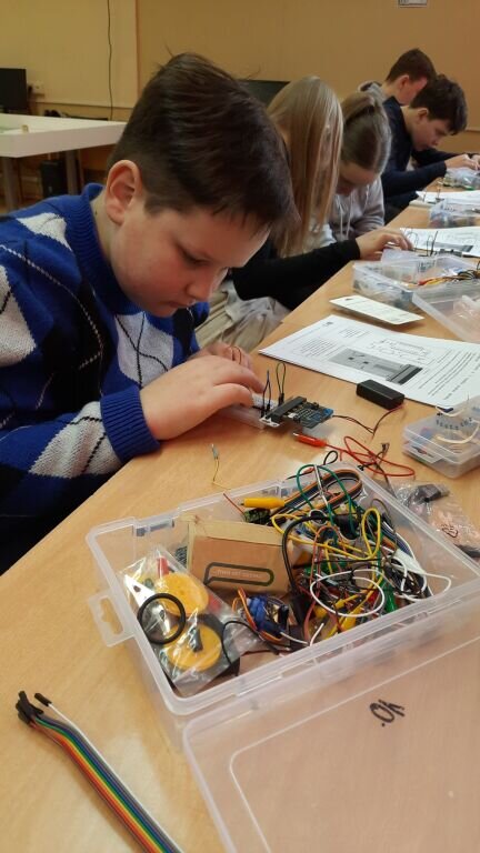 Antroji stovyklos diena prasidėjo matematinėmis STEAM veiklomis. Mokiniai spėjo, matavo, skaičiavo įvairių indų talpą. Toliau sekė veiklos mokyklos laboratorijoje. Mokiniai išbandė įvairius prietaisus: matavo garso stiprumą, vėjo greitį, dirvožemio temperatūrą, savo jėgą, CO2 kiekį. Kompiuterių klasėje mokiniai Micro:bit maketavimo plokštėje jungė elektros grandines, įterpiant vis kitokį elektrotechnikos elementą. Darbas reikalavo kruopštumo, pastabumo ir atidumo.