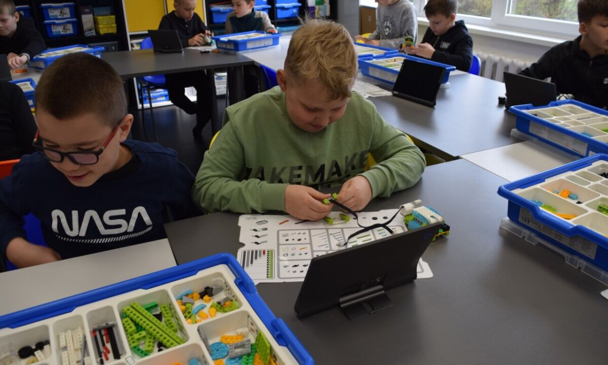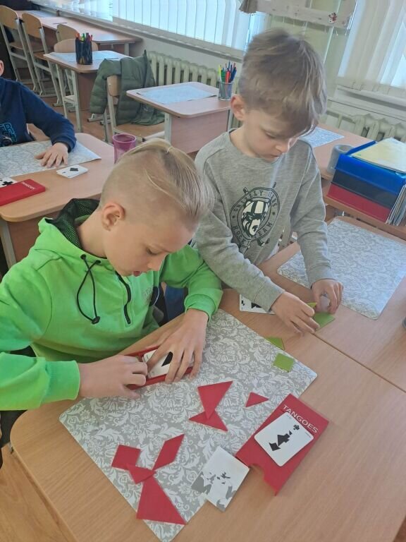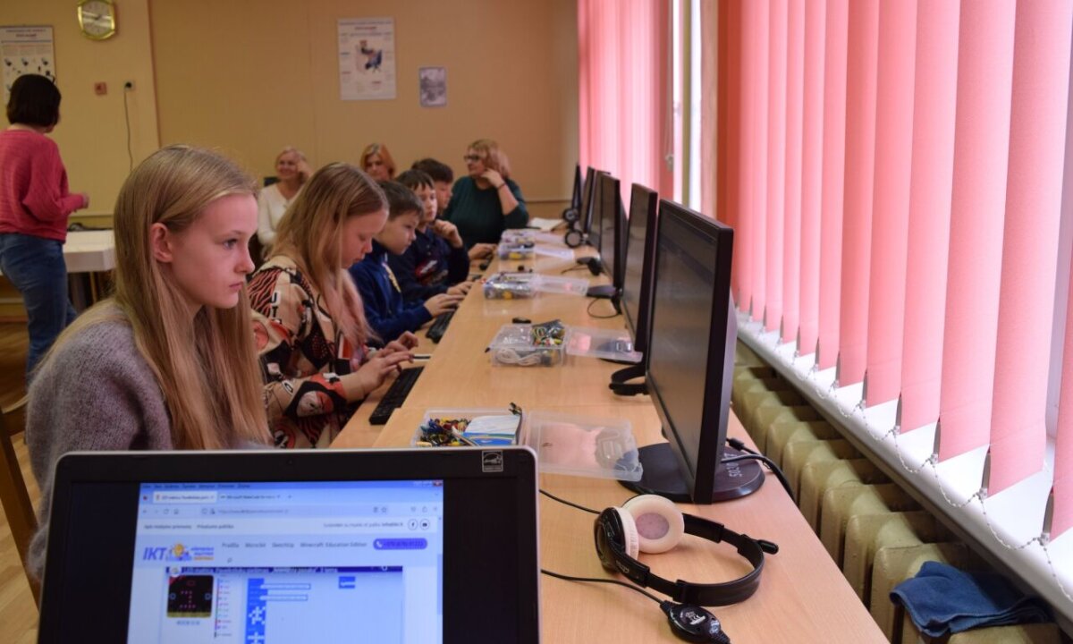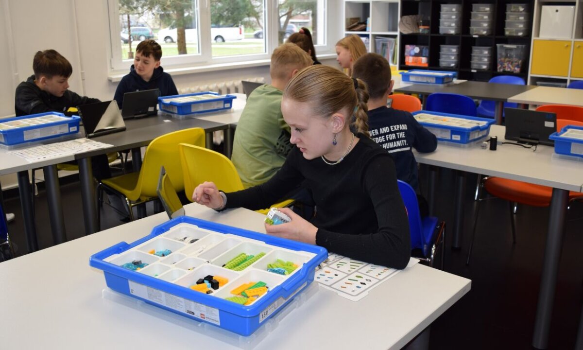 Antrąją dieną veiklos vyko mokykloje. Stovyklautojai mokėsi programuoti „Microbit“, dėliojo tangramas, žaidė kompiuterinį žaidimą, skirtą išmokti saugiai elgtis internete.