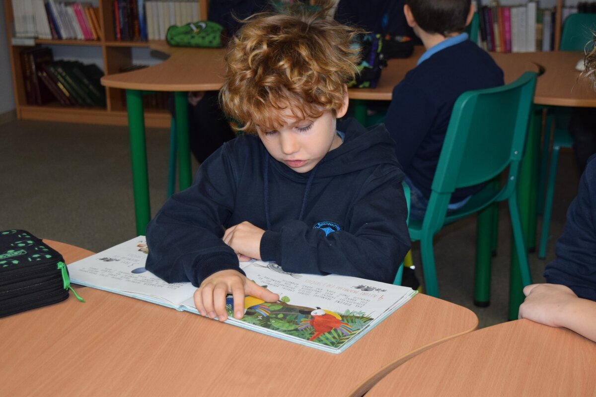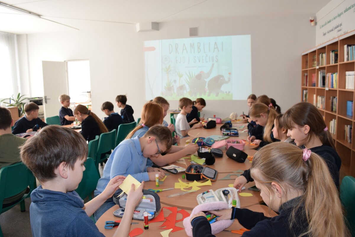 Progimnazijos 1–4 klasių mokiniai dalyvavo tarptautiniame projekte „Kartu paskaitykim knygelę“. Mokiniai skaitė puikias lietuvių rašytojos Evelinos Daciūtės knygas vaikams „Laimė yra Lapė”, „Drambliai ėjo į svečius”, „Liuka, Šmikis Bilba ir kiti“. Trečiokai vaizdingai skaitė pirmokams. Vaikai atliko kūrybinius darbus: gamino knygų skirtukus laputes, vokelius drambliukus, spalvotus stovinčius dramblius. Visi mielai fotografavosi su savo darbeliais.