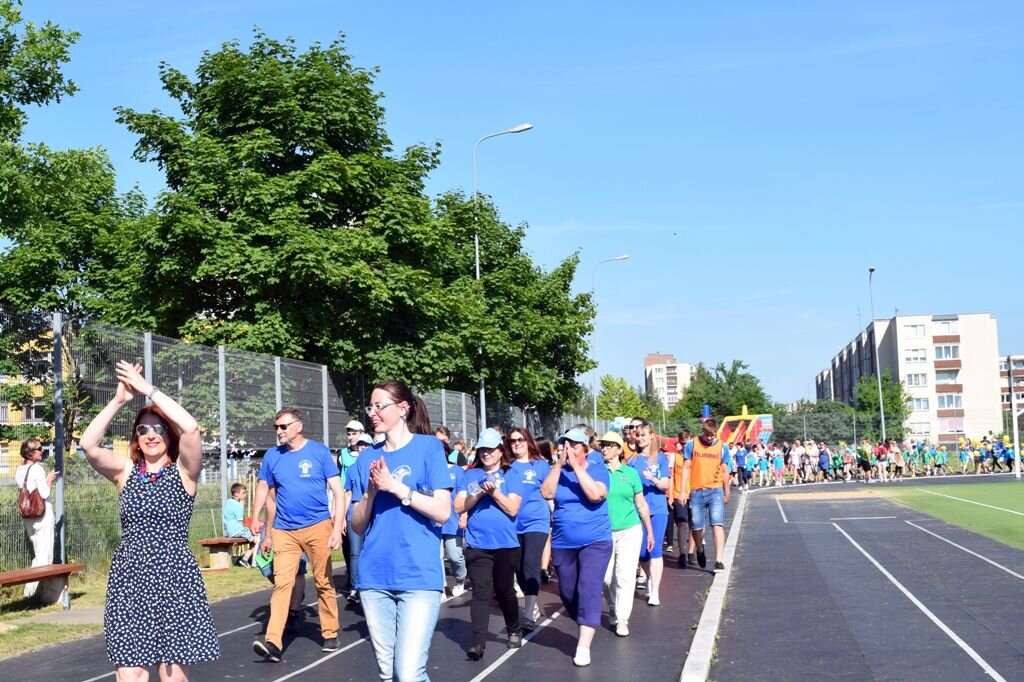 Po pietų vyko iškilmingas sporto šventės atidarymas. Renginys, kaip ir priklauso, buvo pradėtas improvizuotu orkestro pasirodymu. Nesvarbu, kad „muzikantai“- progimnazijos moksleiviai, bet jie sužavėjo visus vaidyba, tikrais instrumentais, scenine apranga, už kuriuos mokykla dėkoja Perekšlių pučiamųjų orkestrui „Saulutė“ ir jos vadovei Ligitai Bilevičienei. Skambant trankioms melodijoms, šokėjos pakvietė klasių komandas, visus dalyvius apeiti garbės ratą aplink stadioną, pasirodyti ir pasidžiaugti būsima smagia prasminga diena. Eisenos priekyje žygiavo „Šaltinio“ progimnazijos direktorė Zina Stripeikienė. Ji vėliau atidarė šventę. Po smagaus šokio prasidėjo linksmosios estafetės. Iš viso kūno kultūros mokytojos D. Dambrauskienė ir A. Kuncevičienė sugalvojo net 8 skirtingas rungtis. Varžėsi ne tik vaikai, į kai kurias rungtis įsijungė ir tėveliai. Mokiniams patiko rungtys su vandens pilnais balionais, manekenų laistymas, dviejų bėgimas apsimovus vienomis kelnėmis ir kiti žaidimai. Azarto netrūko ir virvės traukimo varžybose. Pralaimėjusių, liūdinčių nebuvo, nes tėveliai savo klasių komandas apdovanojo valgomais prizais, o mokyklos direktorė Z Stripeikienė – šventės rėmėjus: L. Mockevičienę, R. Sabeckienę, A. Bieliūno tėvelius, taip pat miesto gimnazijų atstovus, padėjusius teisėjauti sporto varžybose.