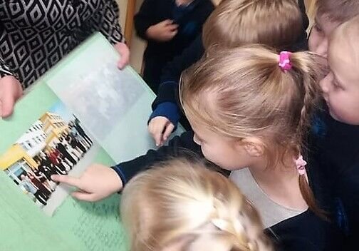 Progimnazijos istorijos muziejuje mokiniai atrado įdomias nuotraukas, nematytus daiktus, kadaise naudotus mokykloje, senąsias uniformas. 1c klasės vaikai abiturientų laidų albume pamatė savo mokytojos Linos, IV laidos abiturientės, nuotrauką. 3a klasės mokiniai pirmųjų mokslo metų dar ranka rašytoje kronikoje rado savo mokytojos Žiedės nuotrauką. Mokiniai viskuo domėjosi, už teisingai atsakytus klausimus dovanų gavo po „Šaltinio lašelį“.