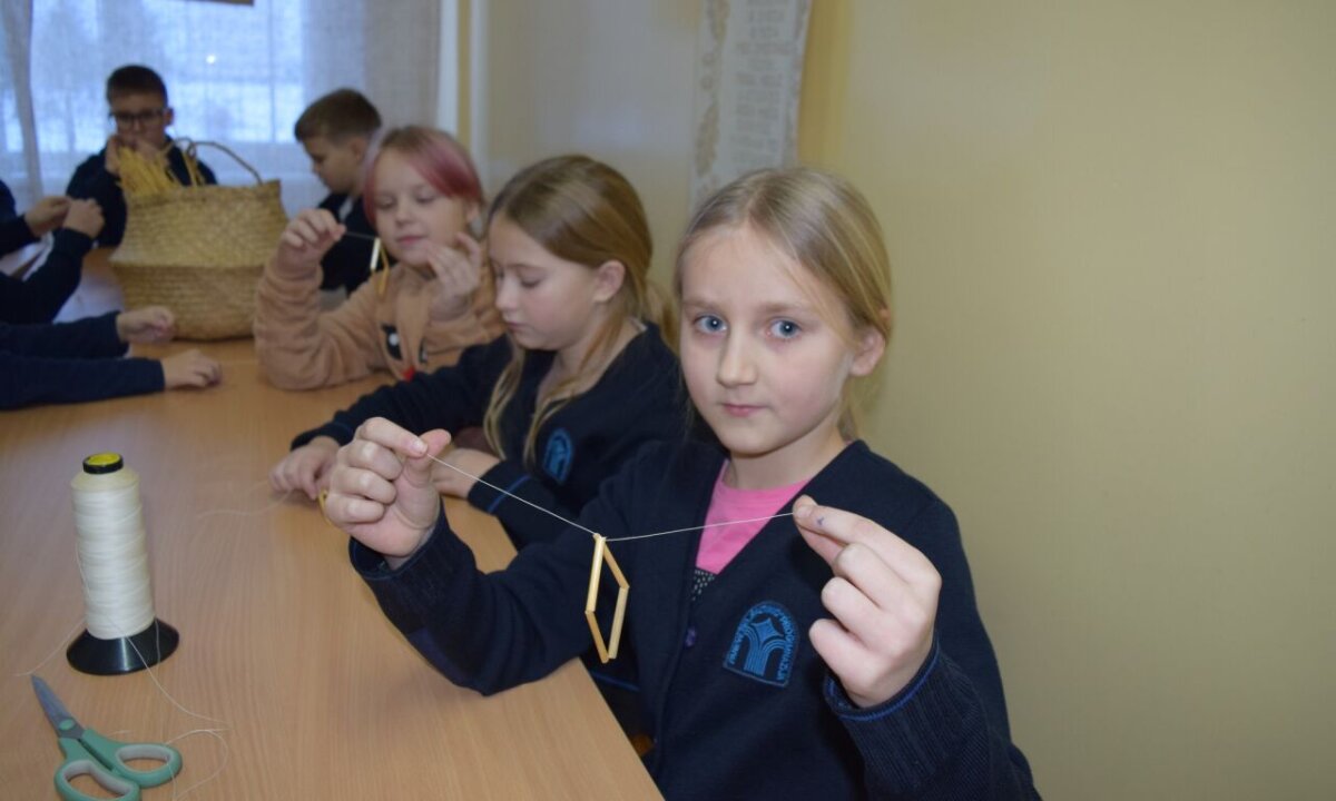 3b klasės mokiniai 2022 m. gruodžio 9 d. kalbėjo apie kalėdinės eglutės puošimą žaisliukais iš tikrų šiaudų. Etninės kultūros klasėje, padedant mokytojai Meilutei ir bibliotekininkei Aldonai, patys gamino reketuką – iš 12 vienodo ilgumo šiaudelių suvarstė daugiakampį. Reikėjo kruopštaus darbo ir kantrybės: atsimatuoti vienodo ilgumo siūlus, šiaudelius, siūlus perverti per šiaudelius, sumegzti mazgus. Vaikai pajuto, koks trapus yra šiaudas, sužinojo, kur dar naudojami šiaudai. Vaikams patiko dirbti kitoje erdvėje, pilnoje senovinių daiktų. Trečiokai šiaudiniais žaisliukais papuoš savo eglutes.
