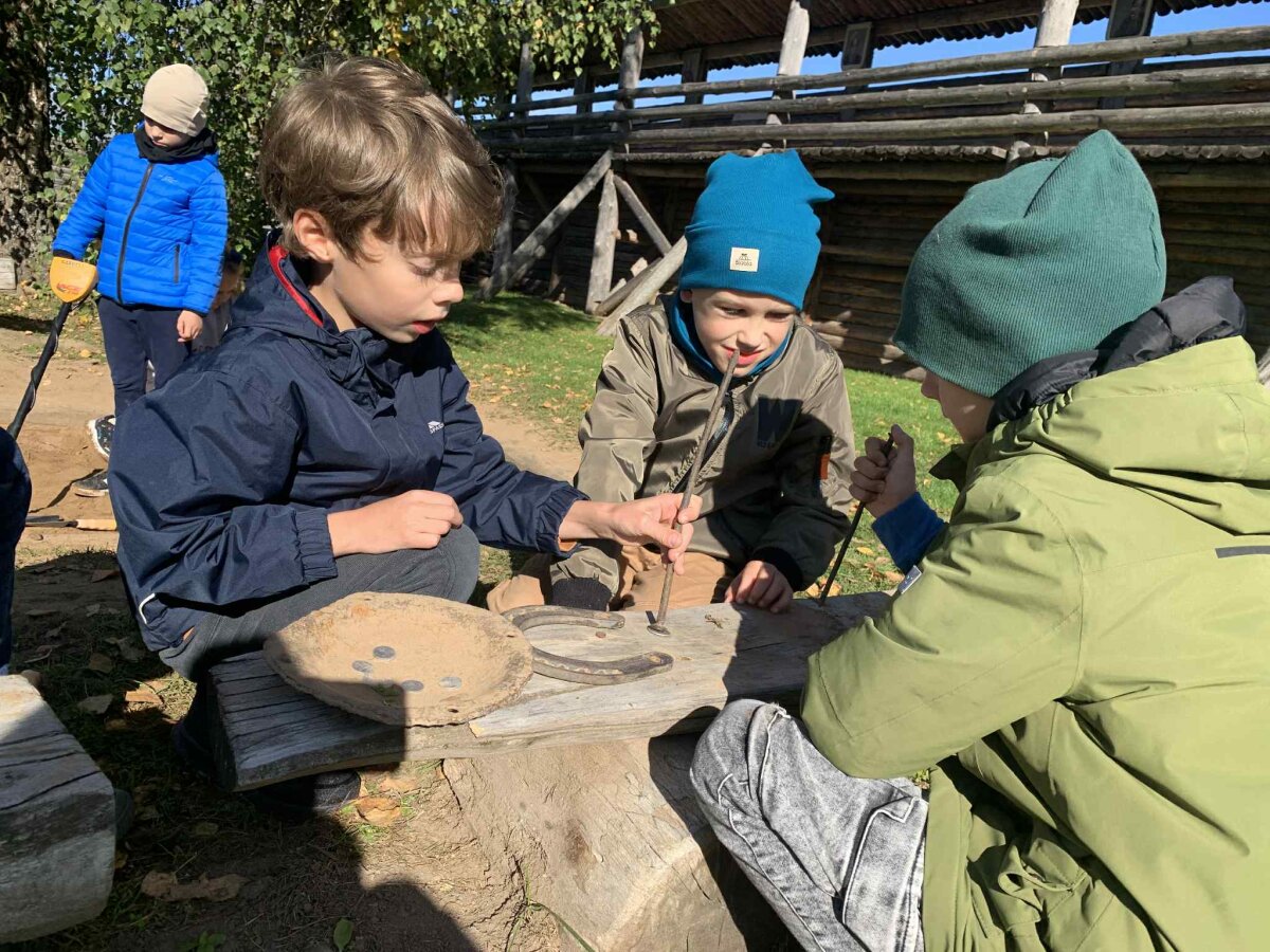 2a klasės mokiniai Biržų krašto muziejuje „Sėla“ kūrė Biržų pilies maketą, tyrinėjo pinigus, puošė senovės lietuvius to laikmečio papuošalais, išmėgino rašymą žąsies plunksna.