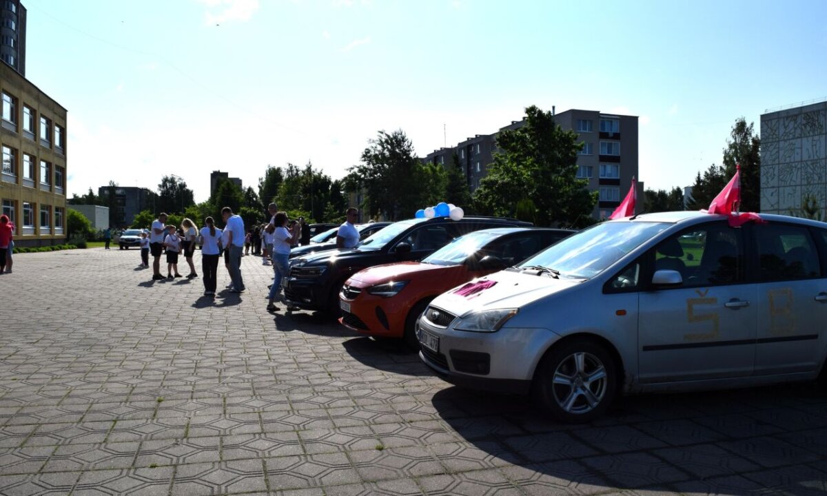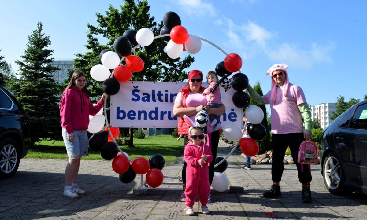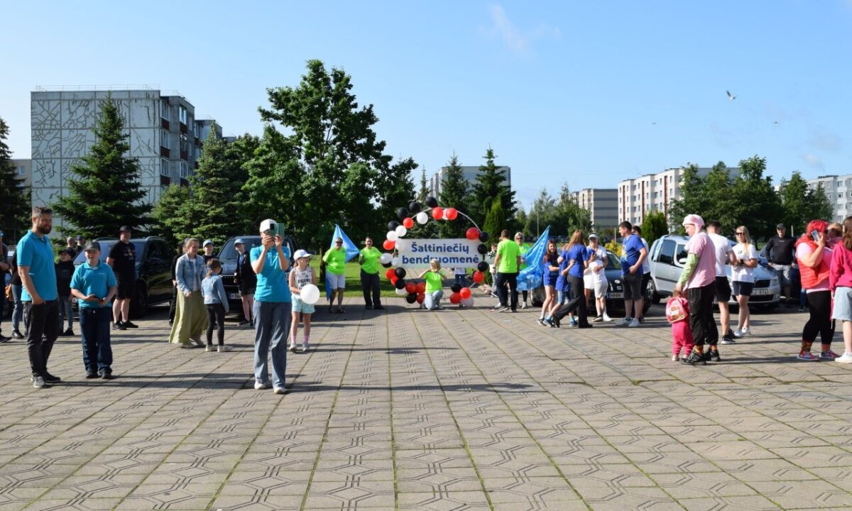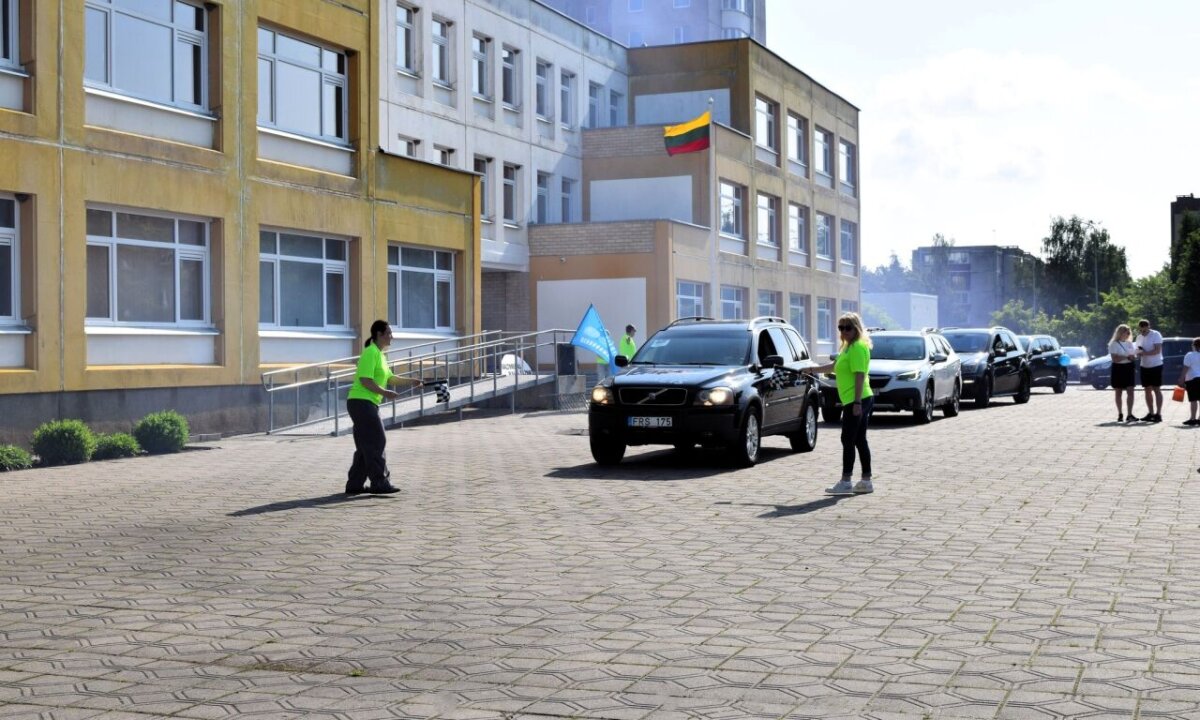 Mūsų progimnazijos komanda išsiskyrė mėlynų vėliavų jūra ir transporto priemone,... -