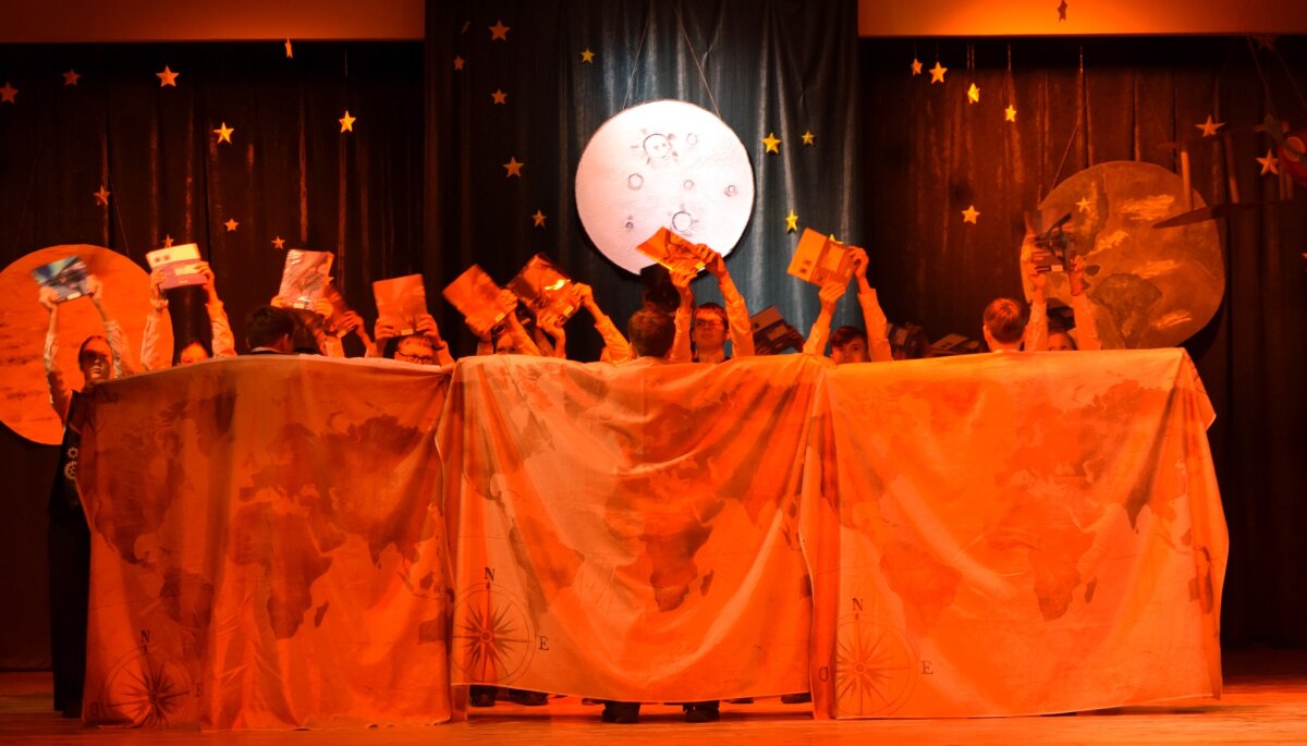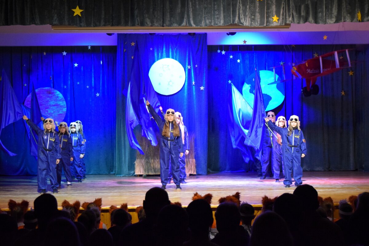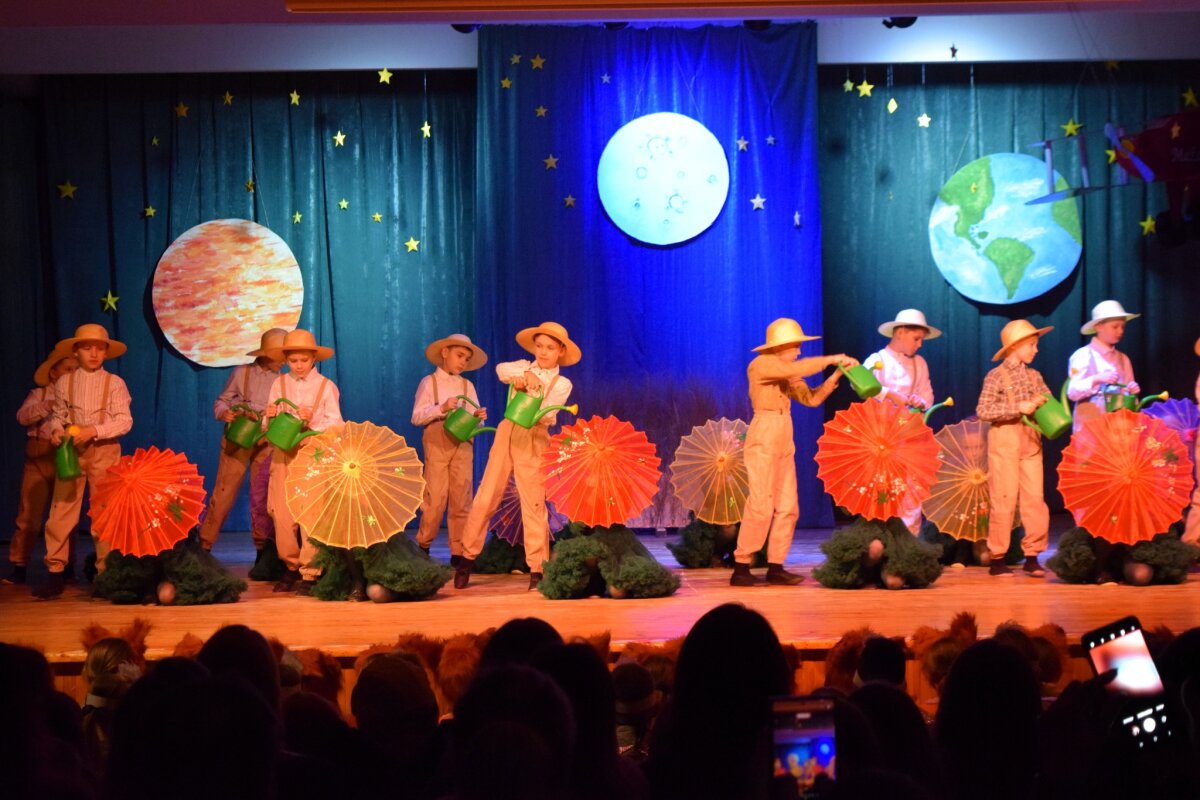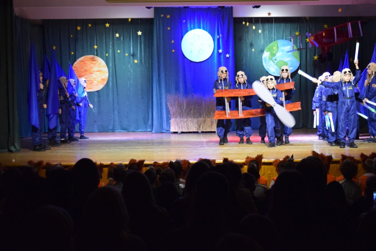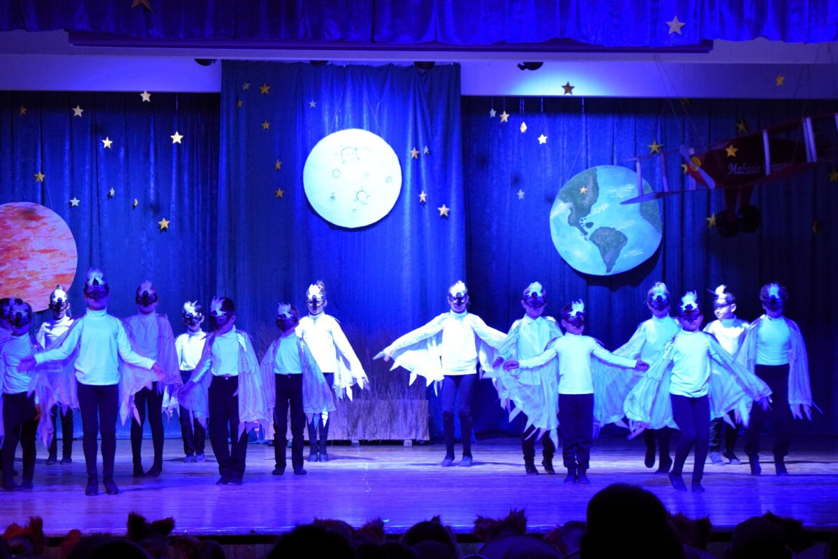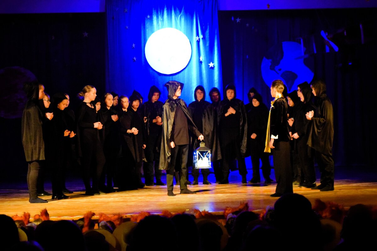 Tris vakarus – gruodžio 16, 17 ir 18 dienomis – scenoje išvydome 1a, 1b, 1c (lapiukai), 2a, 3b, 3c (žvaigždės ir verslininkai), 2b, 2c, 2d (paukščiai), 3a, 4b, 4c (gėlės ir sodininkai), 4a, 5a, 5b (lakūnai), 5c, 6a, 6b (žibintininkai), 7a, 7b,7c (mokslininkai), 8a,8b,8c (garbėtroškos) klasių mokinius.