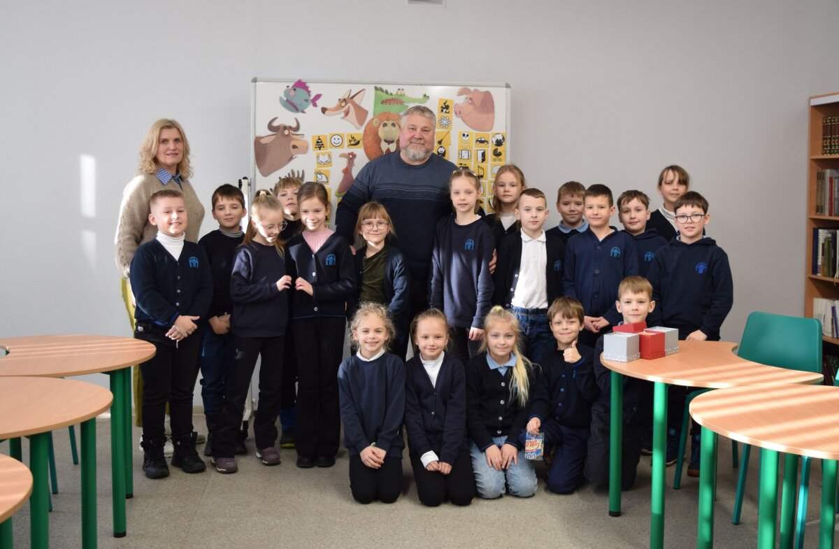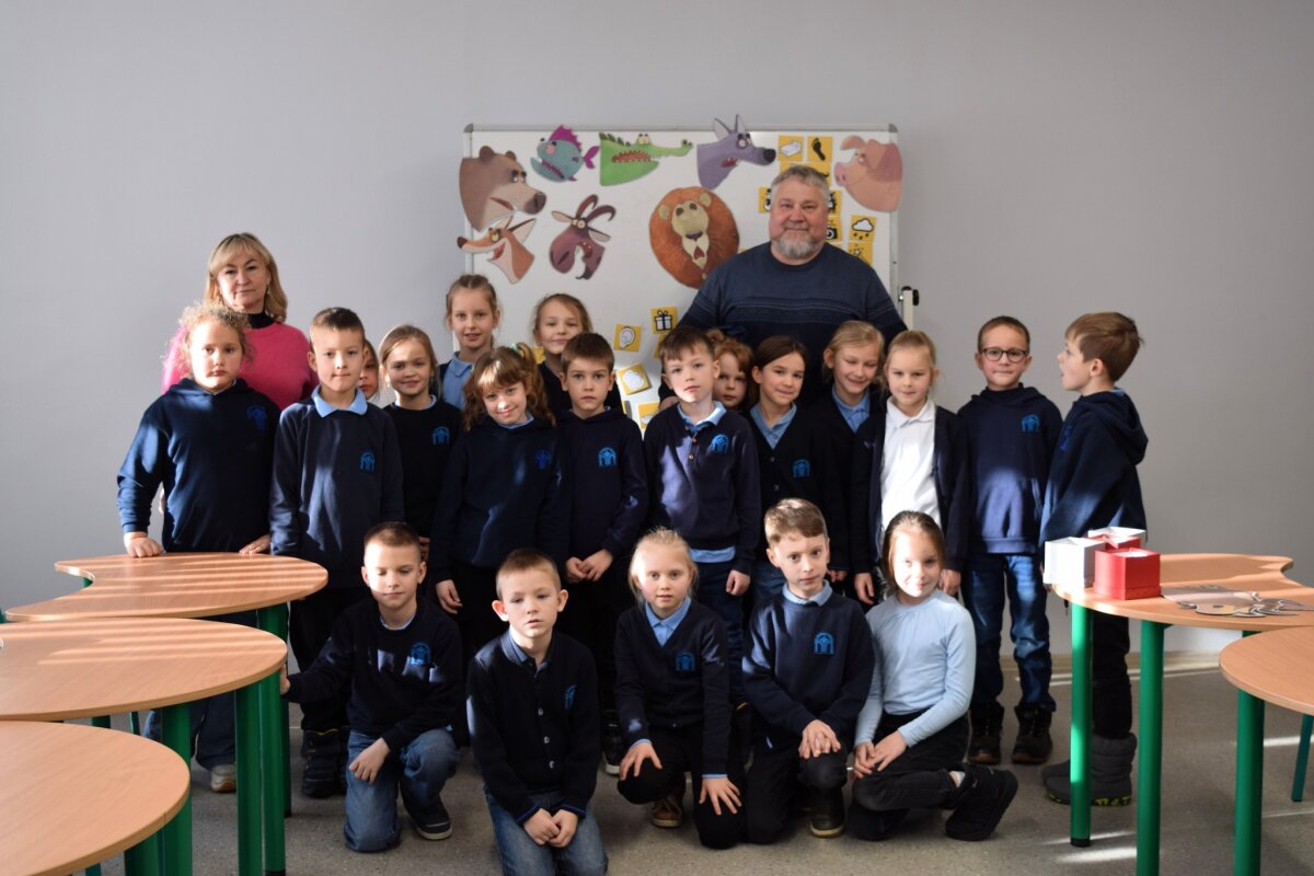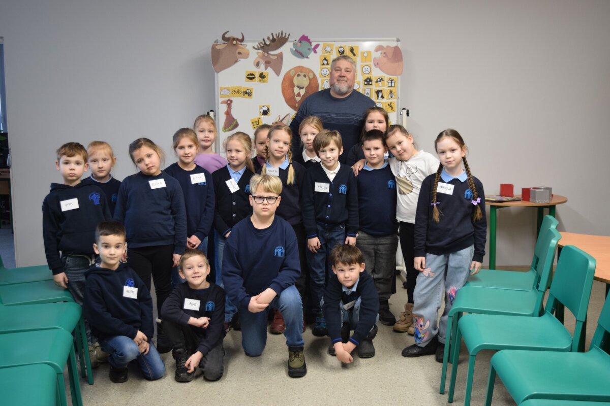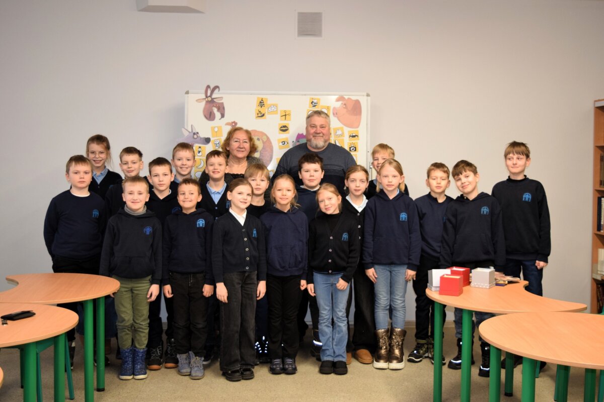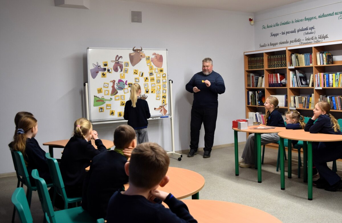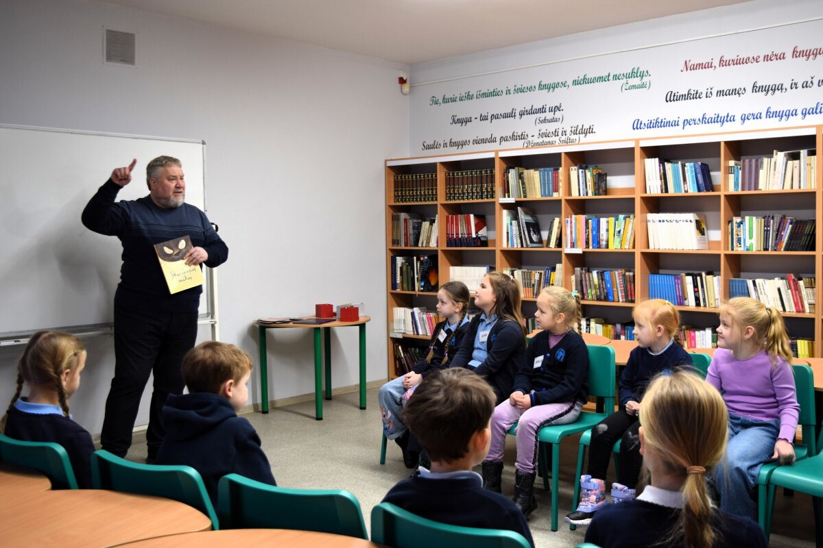 Atsisveikindamas rašytojas išdalino užduotėles, kurias vaikai galėjo atlikti mokykloje ar parsinešti ir padirbėti kartu su tėveliais namuose.