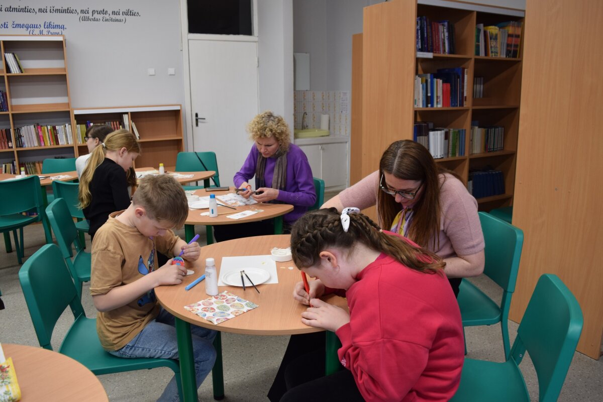 Kovo 26-osios vakarą „Šaltinio“ progimnazijos bibliotekoje šurmuliavo jauki bendrystė – į kūrybines velykines dirbtuvėles susirinko tėvai su vaikais. Kartu kūrėme pavasariškas dekoracijas, dalinomės šypsenomis, idėjomis ir džiugiu artėjančių švenčių laukimu.
