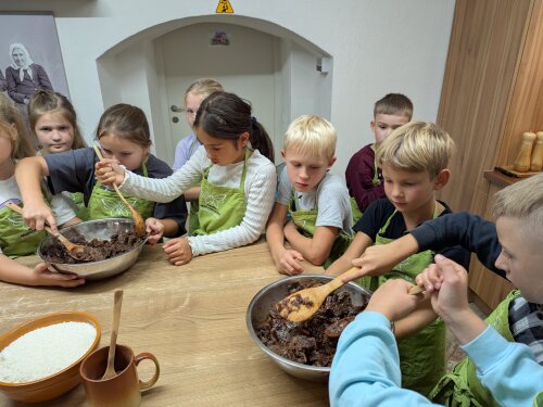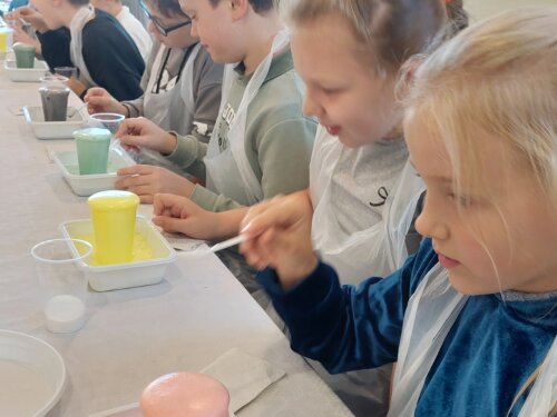 2c klasė Panevėžio miesto galerijoje aiškinosi, kokius desertus mėgo žymiausi Panevėžio žmonės, aiškinosi deserto kilmę ir pagal duotą receptą gamino „sveikuoliškus“ saldainius.