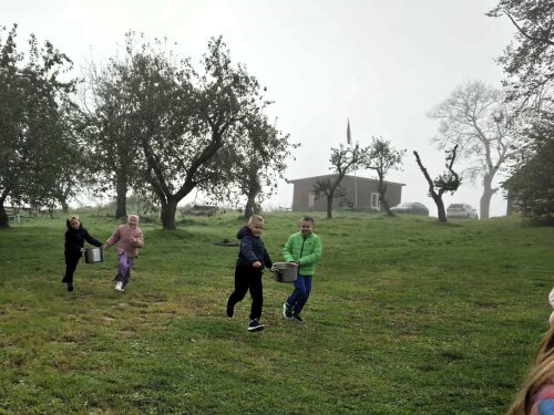 1b klasė vyko į Marijos trobelę, esančią Anykščių rajone. Ten vaikai susipažino su vaismedžių sodu, aiškinosi kiek obuolių reikia obuolių sūriui pagaminti bei visą gamybos technologiją. Patys rinko obuolius sūriui. Vaikai degustavo natūralų obuolių sūrį, obuolių bei kriaušių traškučius, vyšnių, obuolių, kriaušių guminukus. Patys ant vaisinio pagrindo kūrė paveikslą – krimsteiklą.