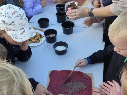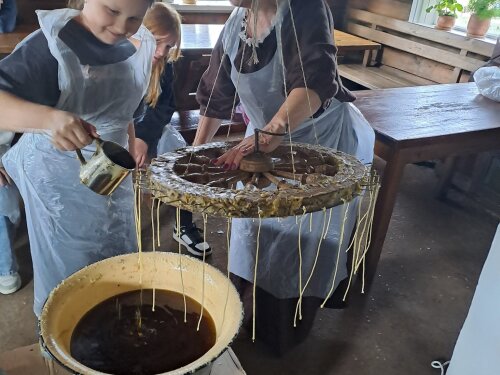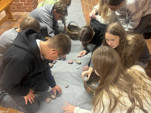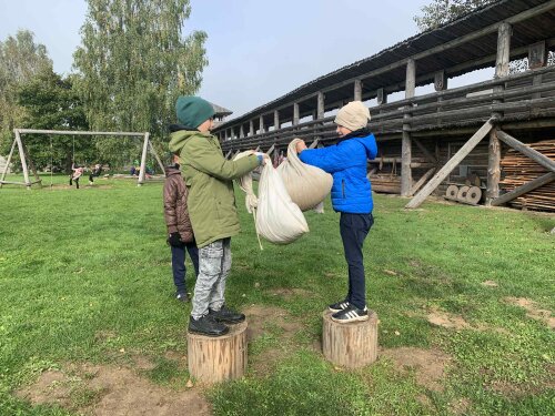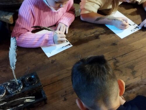 2a klasės mokiniai Biržų krašto muziejuje „Sėla“ kūrė Biržų pilies maketą, tyrinėjo pinigus, puošė senovės lietuvius to laikmečio papuošalais, išmėgino rašymą žąsies plunksna.