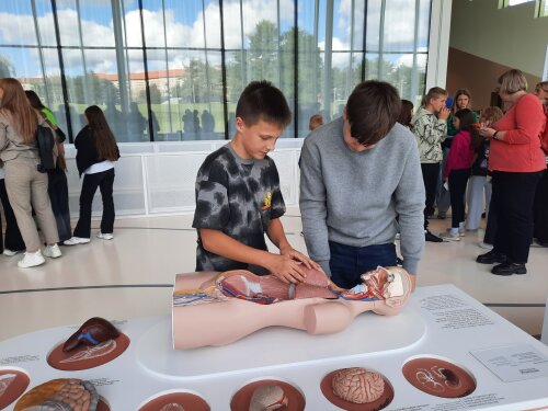 5a, 5b ir 7c klasių mokiniai Kauno „Mokslo saloje“ aiškinosi technologijų įtaką žmogaus pojūčiams ir galimybėms. Išbandė interaktyvius eksperimentus, kurie parodė, kaip žmogus, mašina ir gamta yra tarpusavyje susiję. Praktiškai dalyvaudami žaidybinėse veiklose vaikai atrado gamtos dėsnius. O planetariume stebėjo ir įtvirtino žinias apie planetas ir žvaigždynus.
