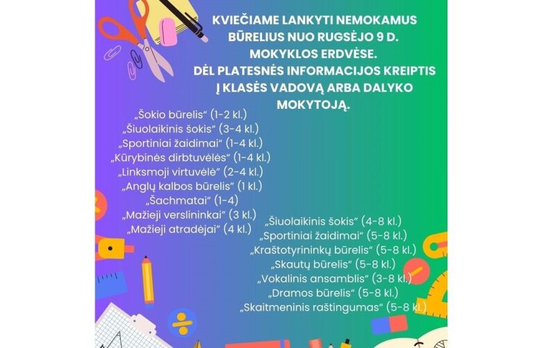 - 2025– 2026 m. m. 5-8 klasių neformaliojo ugdymo tvarkaraštis