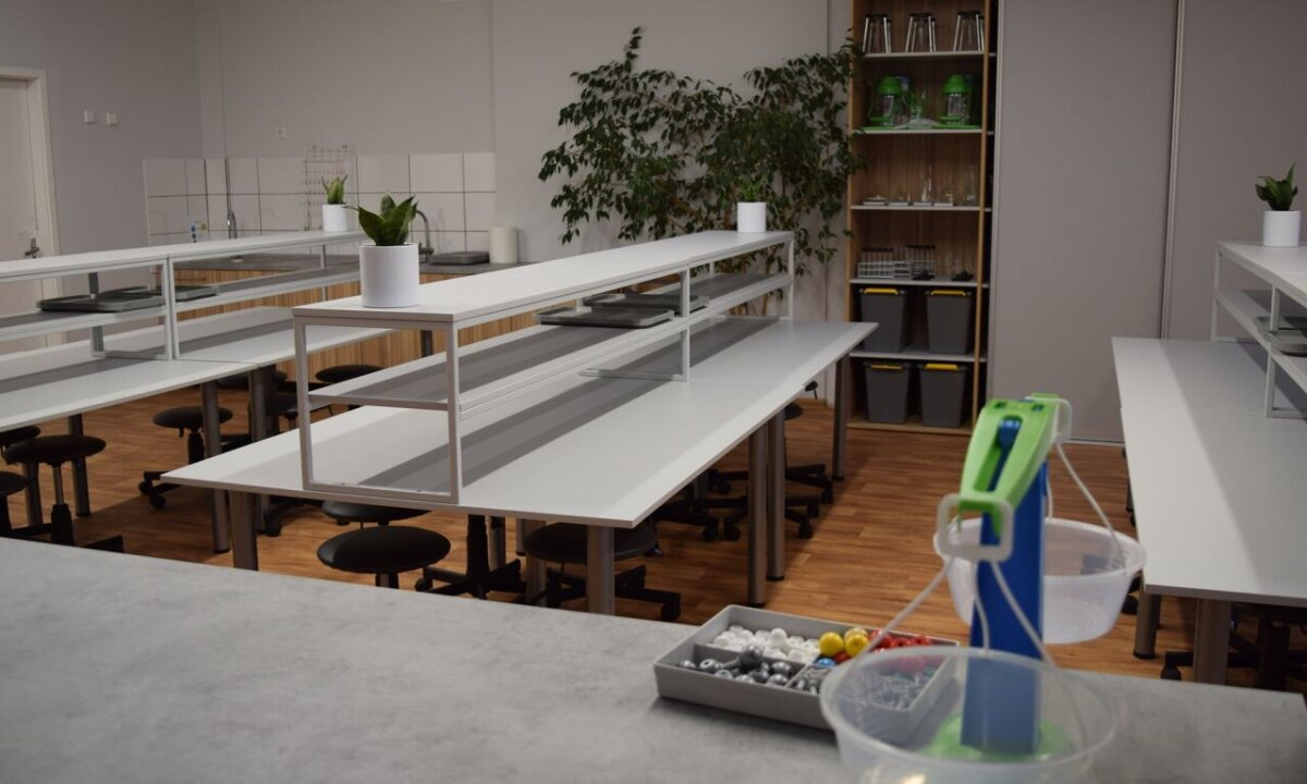 Laboratorija įrengta tėvelių ir darbuotojų skirtos GPM paramos bei Lyderių laiko 3 Panevėžio miesto savivaldybės projekto „Tarpinstitucinis bendradarbiavimas plėtojant STEAM srities dalykų patirtinį mokymąsi“ lėšomis. Priemonės gautos iš Europos Sąjungos struktūrinių fondų ir Lietuvos Respublikos valstybės biudžeto lėšomis finansuojamo projekto „Mokyklų aprūpinimas gamtos ir technologinių mokslų priemonėmis“ (projekto kodas Nr. 09.1.3-CPVA-V-704-02-0001) .