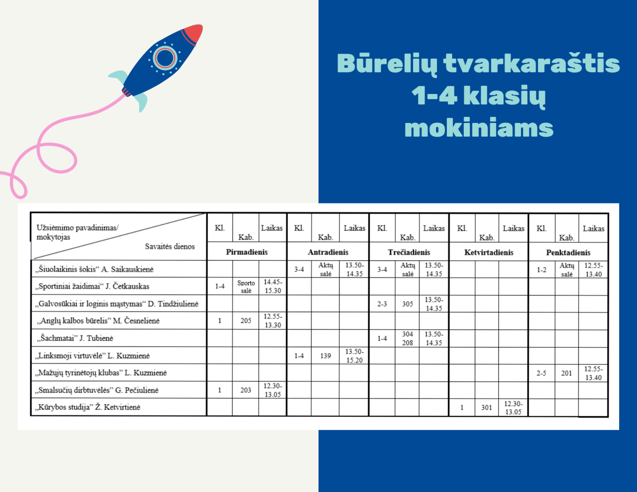 2025 – 2026 m. m. 1-4 klasių neformaliojo ugdymo tvarkaraštis