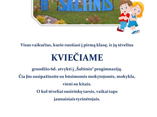 Kviečiame būsimuosius pirmokus ir jų tėvelius!