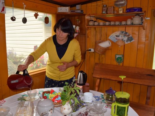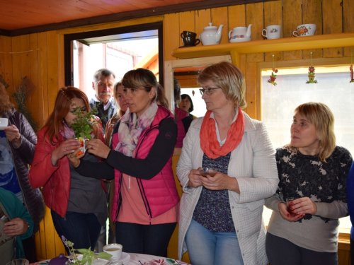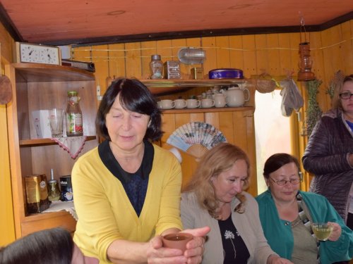 Progimnazijos visuomenės sveikatos priežiūros specialistė Gražina Bieliakienė pakvietė bendruomenės narius į savo sodą pasivaišinti aromatinga pačios per vasarą išaugintų vaistažolių arbata, susipažinti su žolelių vaistinėmis savybėmis, arbatos gėrimo tradicija.
