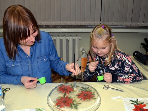 Gruodžio 12 d. mokytojos Auksuolė Urbonienė ir Vida Jarmalavičienė bendruomenės narius pakvietė į praktinį užsiėmimą „Stiklo dekupažas“. Artėjant gražiausioms metų šventėms, buvo smagu sukurti jaukią rankų darbo dovanėlę artimiesiems.