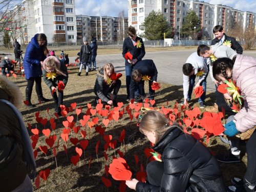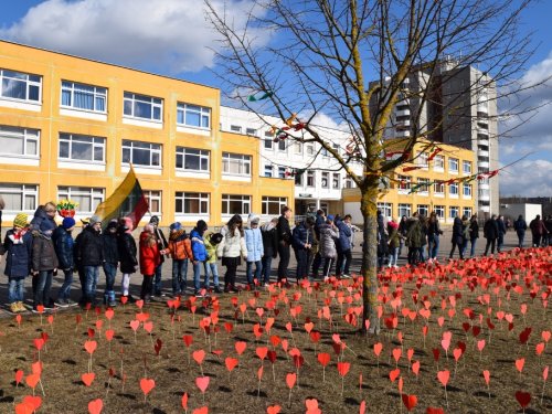 Šiemet Lietuvos Nepriklausomybės atkūrimo dieną progimnazijos bendruomenė paminėjo dalyvaudama socialinėje-pilietinėje iniciatyvoje „Šaltinis myli Lietuvą!“ ir siekė širdelių rekordo. Gražią akciją sumanė direktorės pavaduotoja ugdymui Rūta Vainauskaitė. Ne vieną savaitę mokiniai su mokytojais, tėveliais, seneliais, draugais gamino širdeles. Iš viso buvo padarytos 11304 širdelės. Daugiausiai širdelių prigamino šios klasės: 1a – 1586, 1b – 1127, 1c – 751, 4a – 895, 6a – 1081, 6b – 1198. Geriausiai sekėsi pirmokams, nes jiems labai padėjo šeimos nariai. 1a klasės mokinys Aronas Miciukevičius su šeima padarė net 396 širdeles, o tos pačios klasės mokinys Nojus Mackevičius – 234. Goda Račytė, 1b klasės mokinė, su šeima pagamino 247 širdeles, o 1c klasės mokinys Armandas Norvaiša – 268.