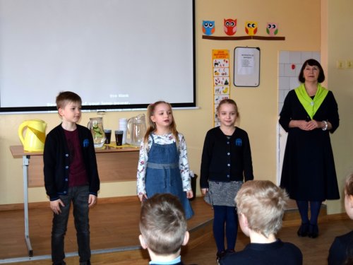 Minint Pasaulinę vandens dieną, „Šaltinio“ progimnazijoje vyko renginys pirmų klasių mokiniams „Vanduo – gyvybės šaltinis“. Mokyklos sveikatos priežiūros specialistė Gražina Bieliakienė renginį pradėjo rašytojo Antuano de Sent-Egziuperi žodžiais apie vandenį: ,,Per maža pasakyti, kad tu reikalingas gyvybei – tu pats esi gyvybė“. Mokytojos Vaidos mokinukai deklamavo eilėraštukus apie vandenį. Į renginį buvo pakviestas UAB „Aukštaitijos vandenys“ darbuotojas Svajūnas Mikeška. Svečias demonstravo filmuką apie vandens reikšmę žmogui, gyvūnams, gamtai, kvietė prisidėti saugant, tausojant vandens telkinius. Svečias pasakojo apie mieste įdiegtą geriamojo vandens tiekimo ir nuotekų sistemą, mokiniams dovanojo balionus ir knygutes „Vandens kelias“. Sveikatos specialistė Gražina kartu su mokytoja Snaige vaišino įvairių skonių vandeniu. Skaniausias buvo vanduo su agurkais. Sveikatos specialistė paaiškino mokiniams, kodėl ryte būtina išgerti stiklinę vandens. Renginys baigėsi pagamintų mažų popierinių vandens lašelių sujungimu į vieną didelį vandens lašą ir pasižadėjimais saugoti gamtą bei vandens telkinius.