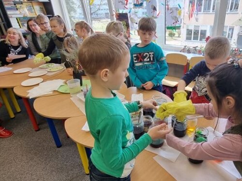 Smagu buvo pasinerti į kiaušinių marginimo paslaptis su mokytoja Neringa, o mokytoja Daiva nustebino japoniškų konstruktorių galimybėmis kuriant savo Velykinį margutį...