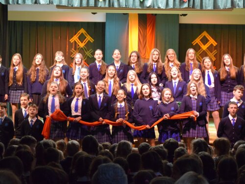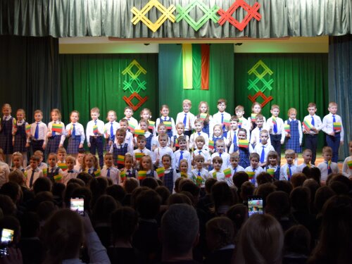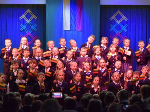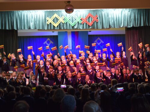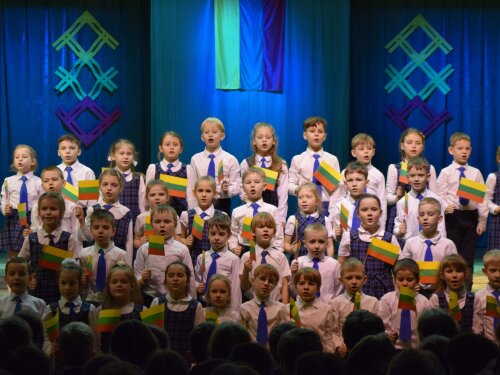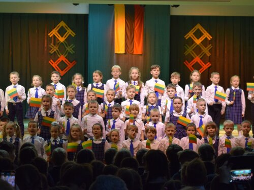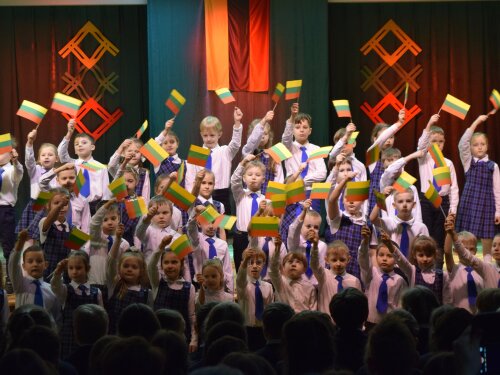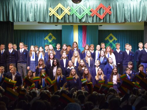 Mokinių lūpomis pasakojama istorija, visus esančius salėje, nukėlė net į 1918-uosius metus, kai Vilniuje, Pilies g. 26, Jonas Basanavičius rado kompromisą tarp skirtingas politines pažiūras turinčių signatarų. Ir štai 1918 metų vasario 16 d. pasirašytas dokumentas skelbia, kad atkuriama Lietuvos Valstybė, ir ji atsižada nuo visų valstybinių ryšių, kada nors buvusių su kitomis tautomis. Pasirašėme… o kas dabar?, – klausė renginio vedantysis. Ir tada uždainavo LIETUVA. O ji juk – MES: bendruomenė, kuri renginio pradžioje, pridėjusi ranką prie krūtinės, giedojo himną. Lietuva – jie: nuo nedrąsaus pirmoko su vėliavėle rankoje iki aštuntoko, kuris su pasididžiavimu traukė „Myliu gyvenimą”.