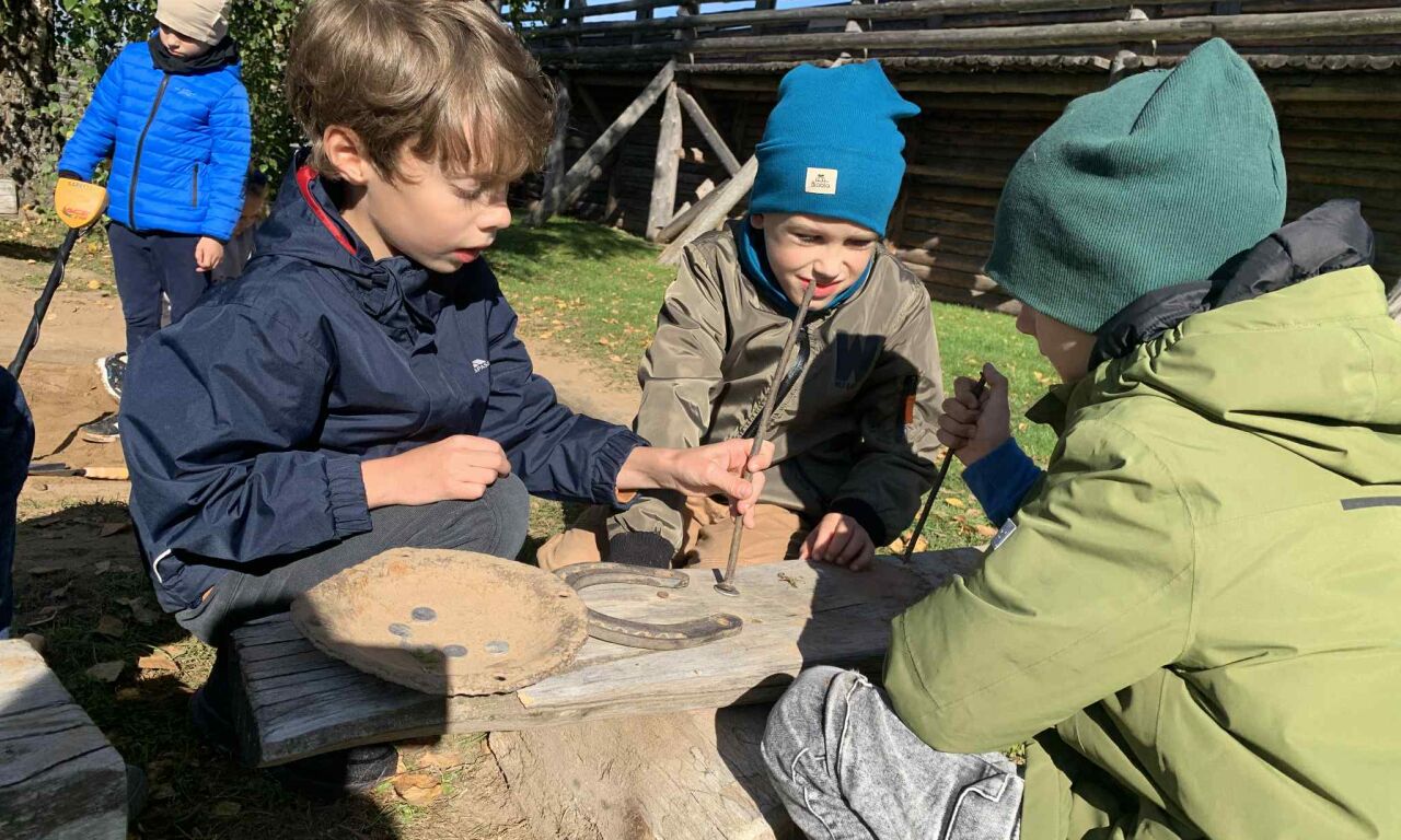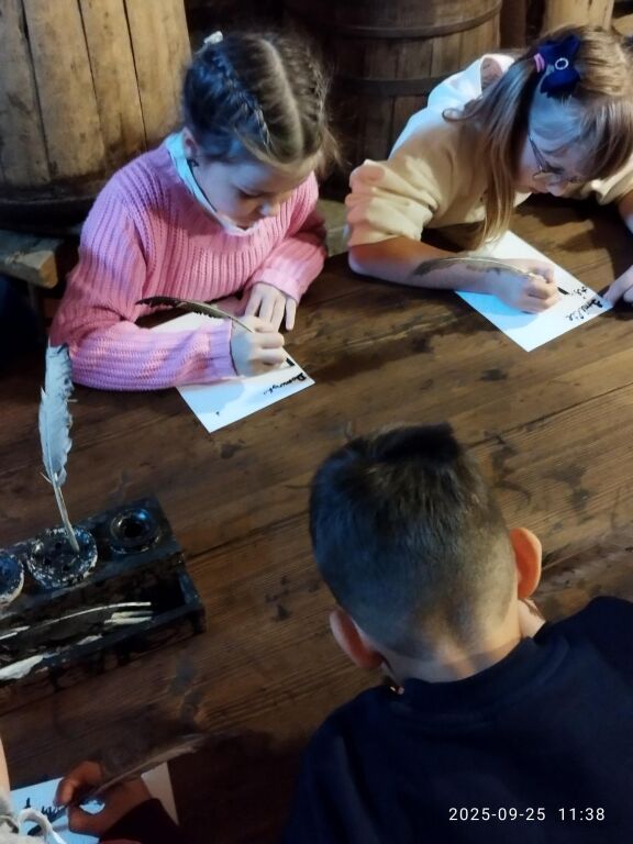2a klasės mokiniai Biržų krašto muziejuje „Sėla“ kūrė Biržų pilies maketą, tyrinėjo pinigus, puošė senovės lietuvius to laikmečio papuošalais, išmėgino rašymą žąsies plunksna.