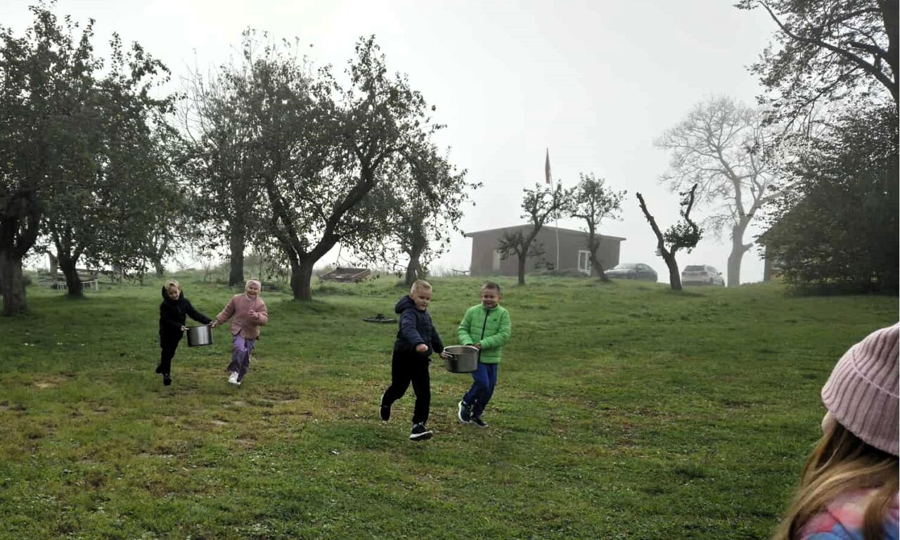 1b klasė vyko į Marijos trobelę, esančią Anykščių rajone. Ten vaikai susipažino su vaismedžių sodu, aiškinosi kiek obuolių reikia obuolių sūriui pagaminti bei visą gamybos technologiją. Patys rinko obuolius sūriui. Vaikai degustavo natūralų obuolių sūrį, obuolių bei kriaušių traškučius, vyšnių, obuolių, kriaušių guminukus. Patys ant vaisinio pagrindo kūrė paveikslą – krimsteiklą.